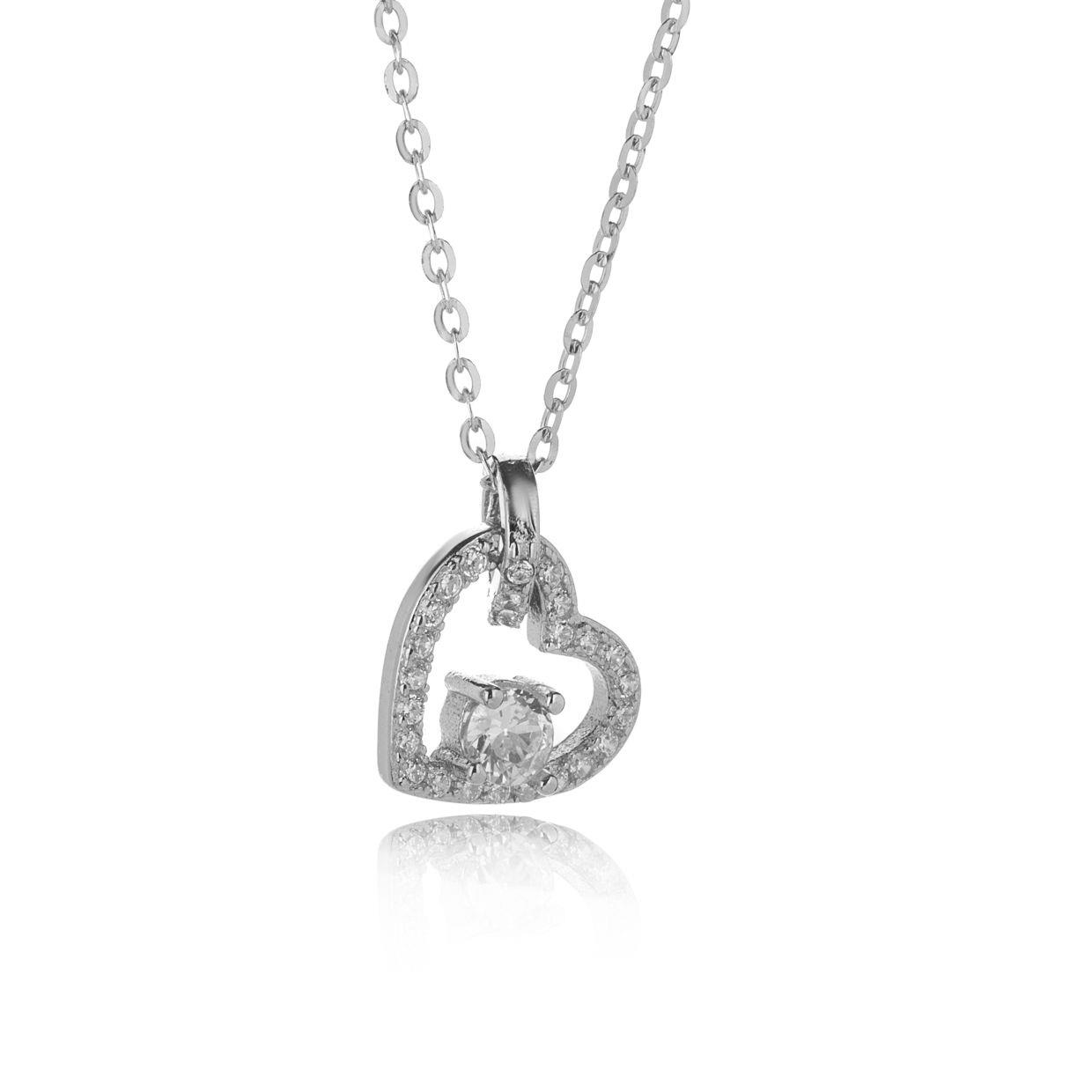 Κολιέ ασημένιο με ζιργκόν πέτρες κατά μήκος της καρδιάς.