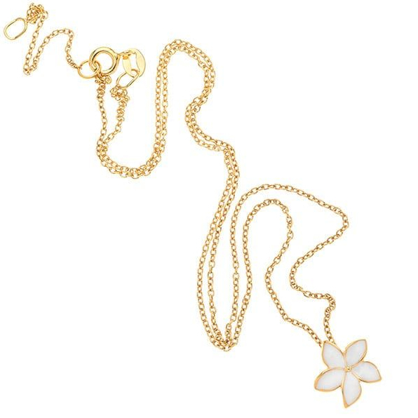 Κολιέ ασημένιο σε κίτρινο χρυσό χρώμα με ιδιαίτερο σχέδιο από λουλούδι σε λευκό σμάλτο.