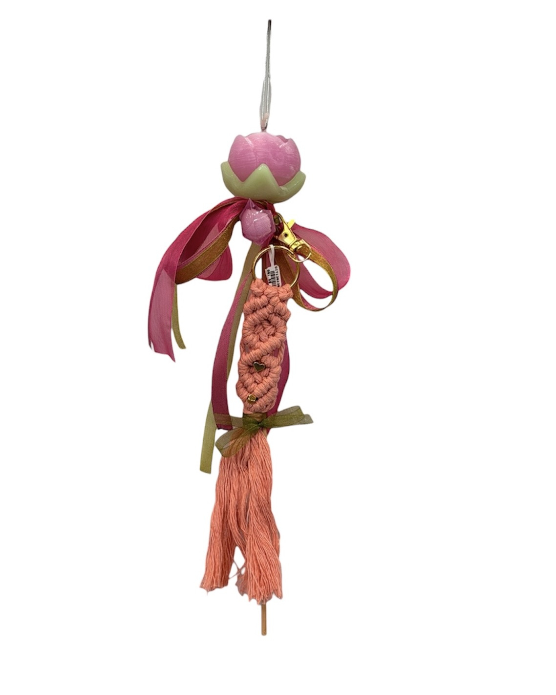 Λαμπάδα χειροποίητη με κερί λουλούδι και κρεμαστό πλεκτό μπρελόκ.