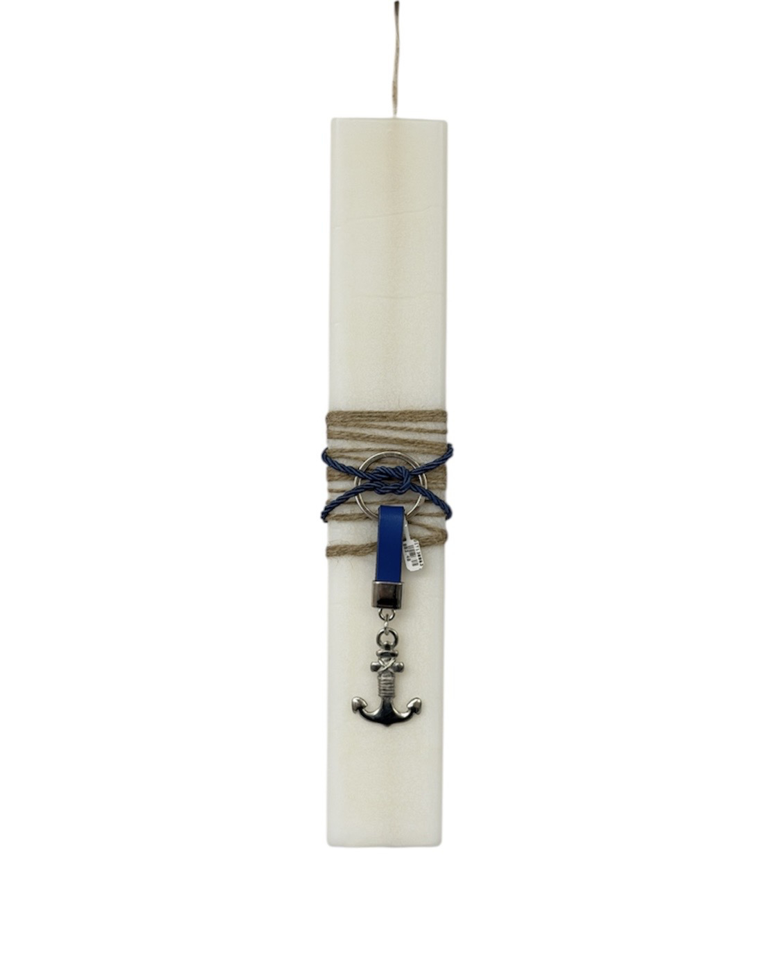 Λαμπάδα χειροποίητη με λευκό τετραγωνισμένο κερί συνδυασμένο με μπρελόκ.