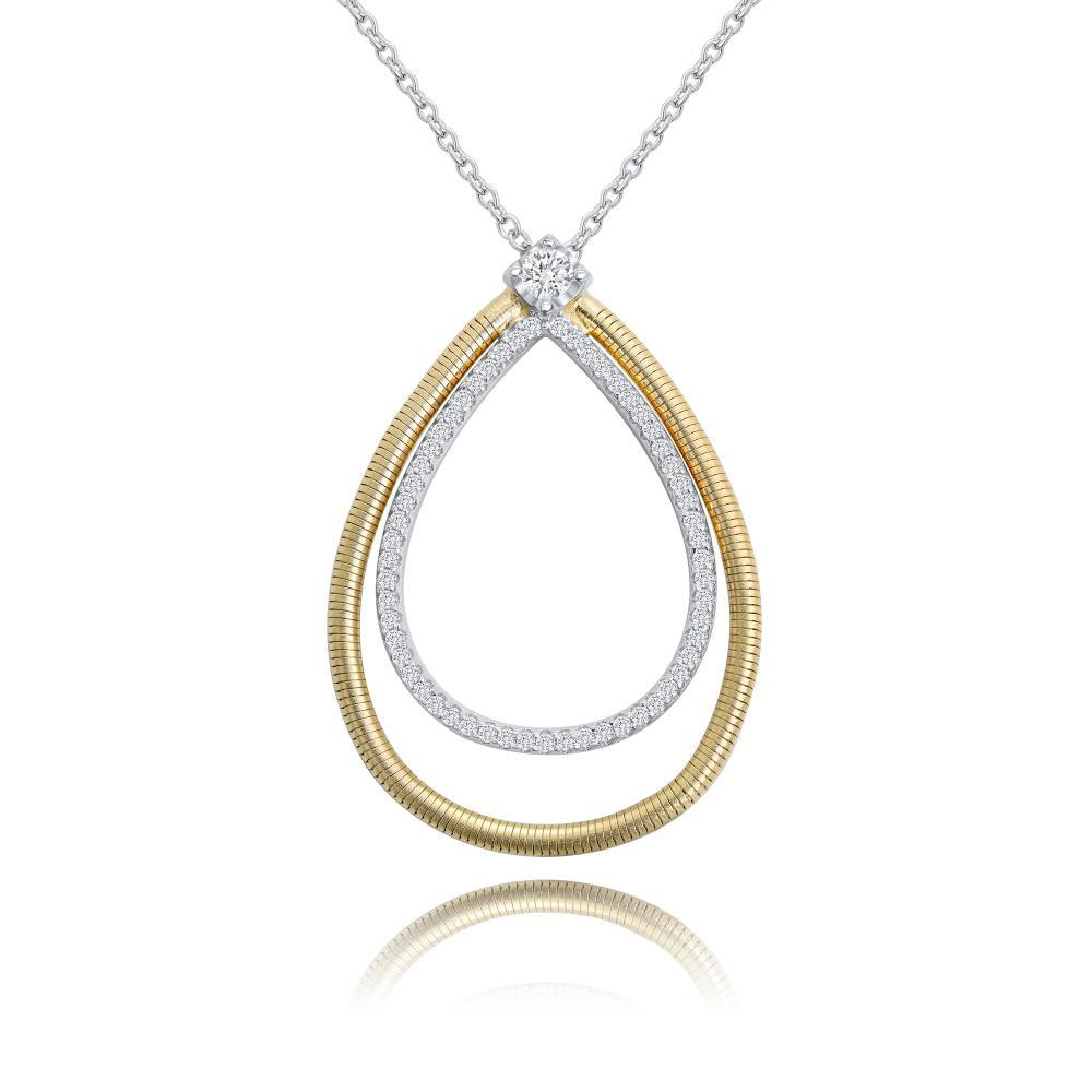 Κολιέ ασημένιο επιχρυσωμένο με σχέδιο δάκρυ μεγάλου μεγέθους από ζιργκόν καρφωμένες πέτρες.