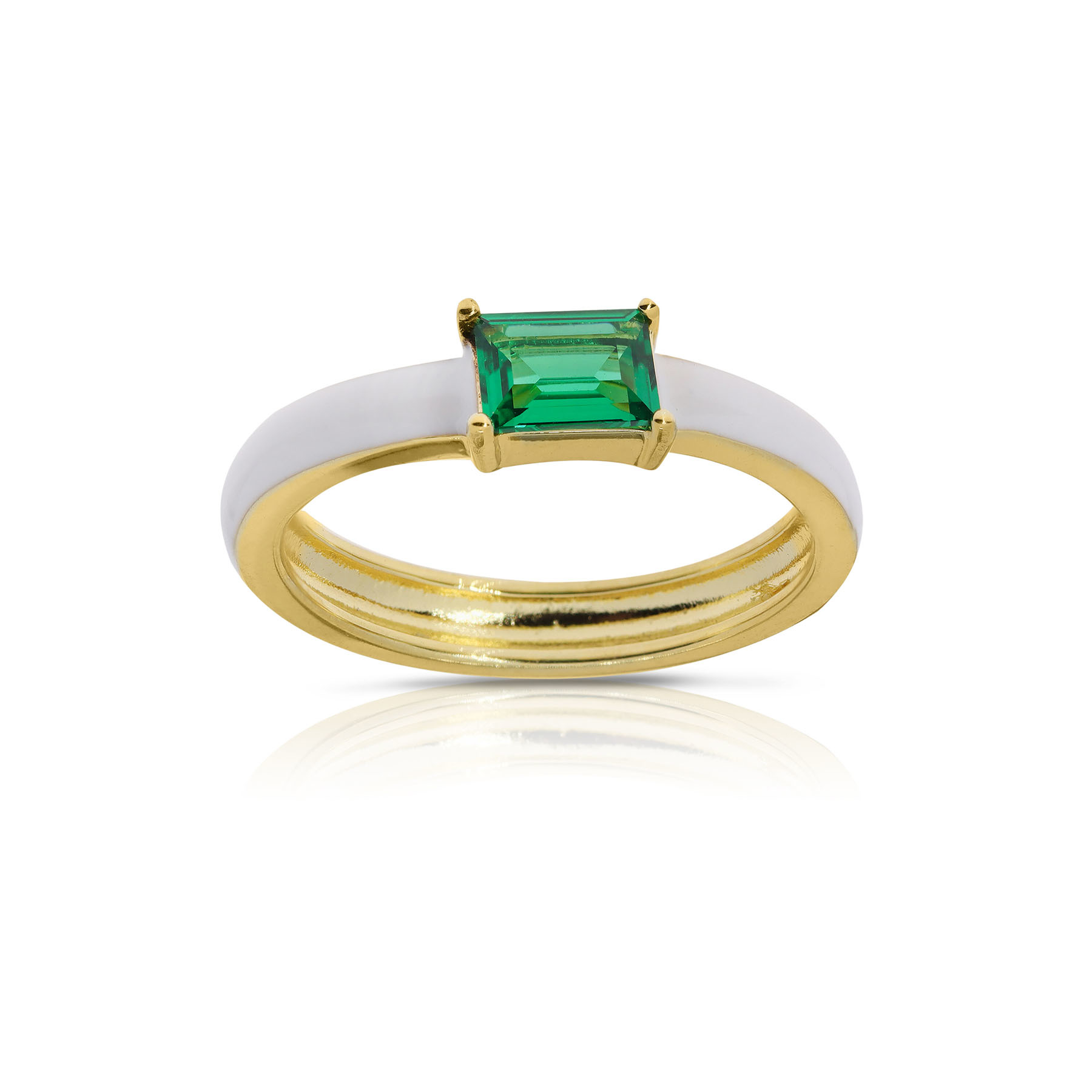 Δαχτυλίδι ασημένιο σε κίτρινο χρώμα με σμάλτο και ζιργκόν πέτρα.