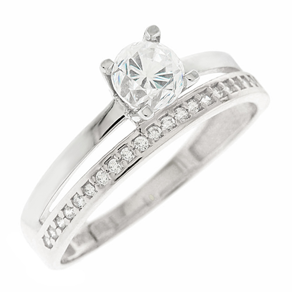 Χρυσό μονόπετρο 14 καρατίων σε λευκό χρυσό με κεντρική εντυπωσιακή ζιργκόν πέτρα και μικρότερες περιμετρικά.