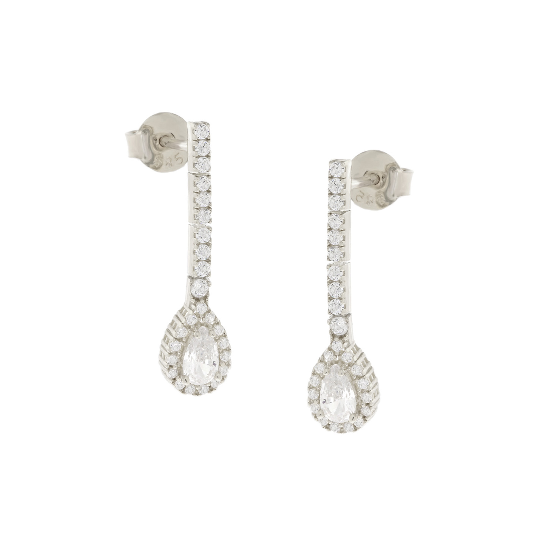 Σκουλαρίκια κρεμαστά μεσσαίου μεγέθους με ζιργκόν πέτρες σε λευκό χρυσό 14 καρατίων.