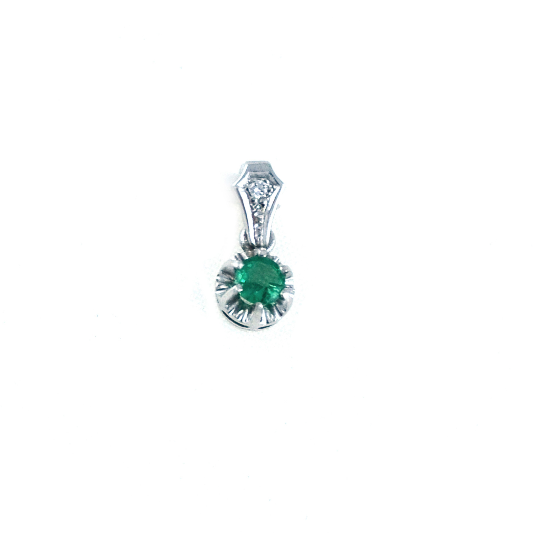 Μενταγιόν χρυσό 18 καρατίων λευκό χρώμα με καρφωμένα σμαράγδια 0,22ct brilliant κοπής και διμάντι φυσικό 0.01ct.