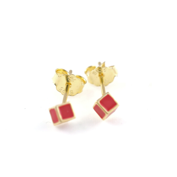 Ασημένια σκουλαρίκια καρφωτά με σχέδιο τρισδιάστατου κύβου από  σμάλτο.