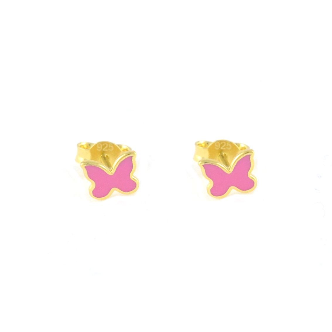 Ασημένια σκουλαρίκια καρφωτά με σχέδιο πεταλούδας από ροζ σμάλτο.