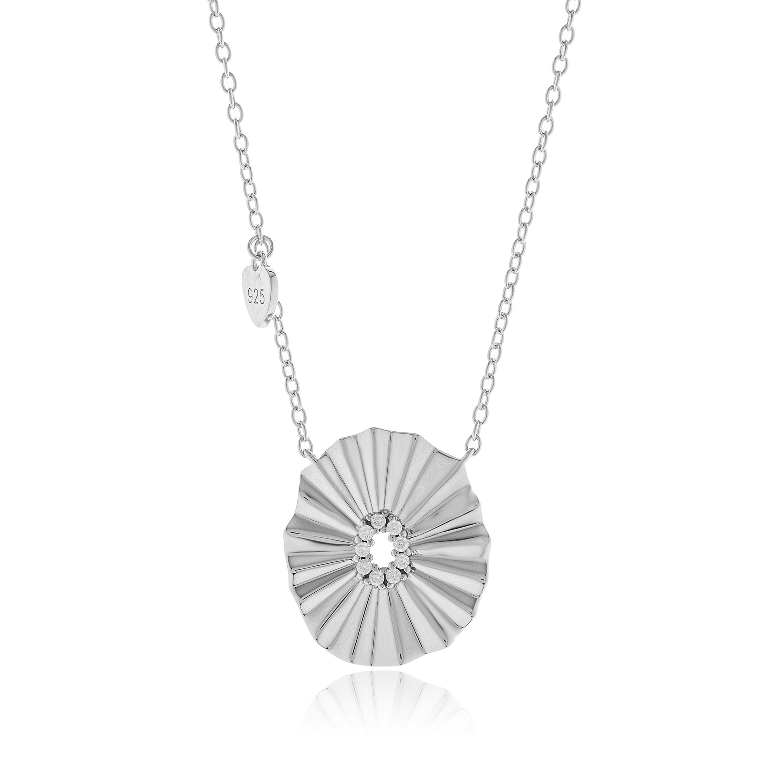 Κολιέ ασημένιο με ζιργκόν πέτρες στο μενταγιόν και αλυσίδα με προέκταση.