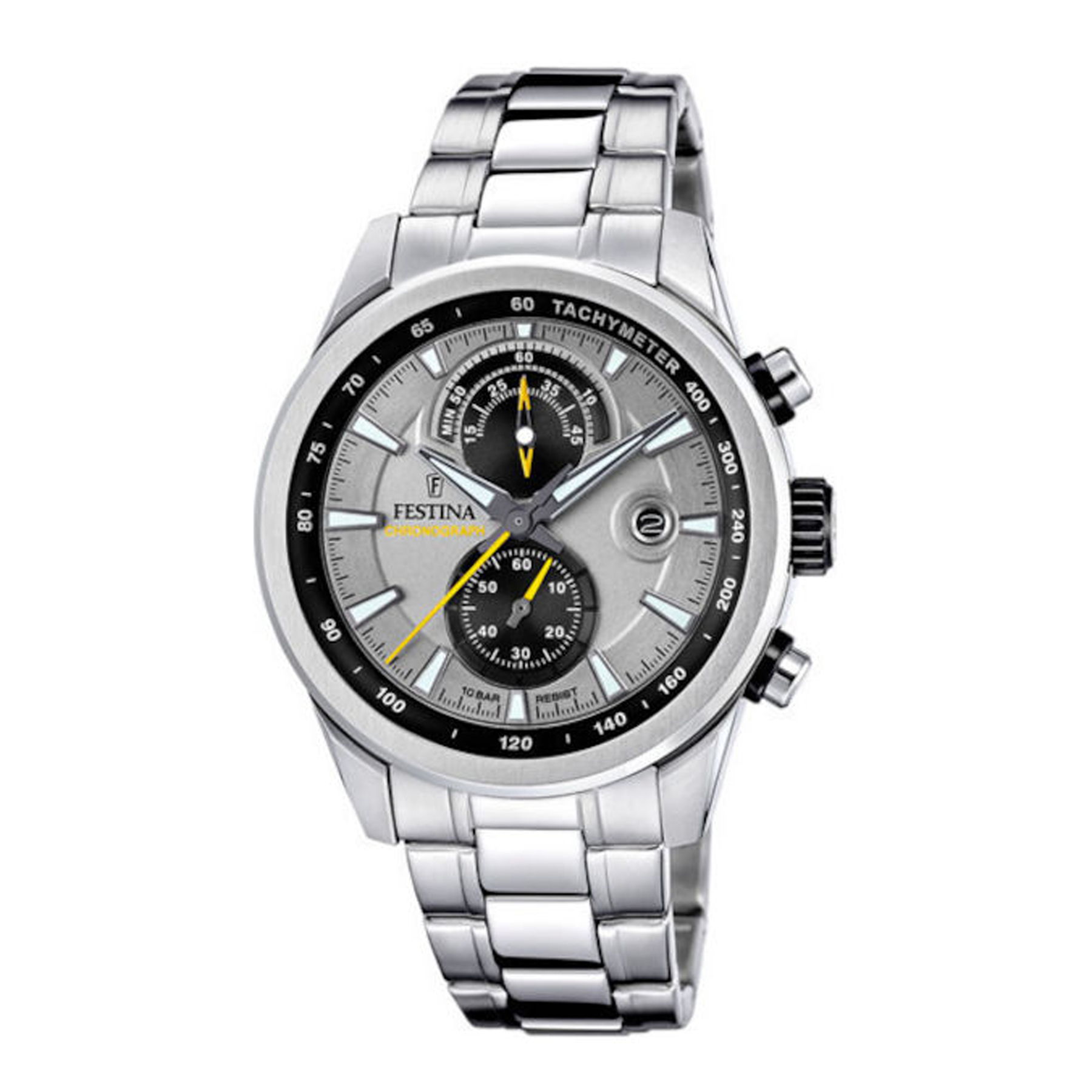 Ρολόι μπαταρίας με μπρασελέ και αδιάβροχο στις 10 ατμ.,κρύσταλλο ορυκτό ειδικής σκλήρυνσης, ένδειξη ημερομηνίας,24ώρου, χρονογράφος, διάμετρο καντράν 44 μμ, και 2 χρόνια εγγύηση.