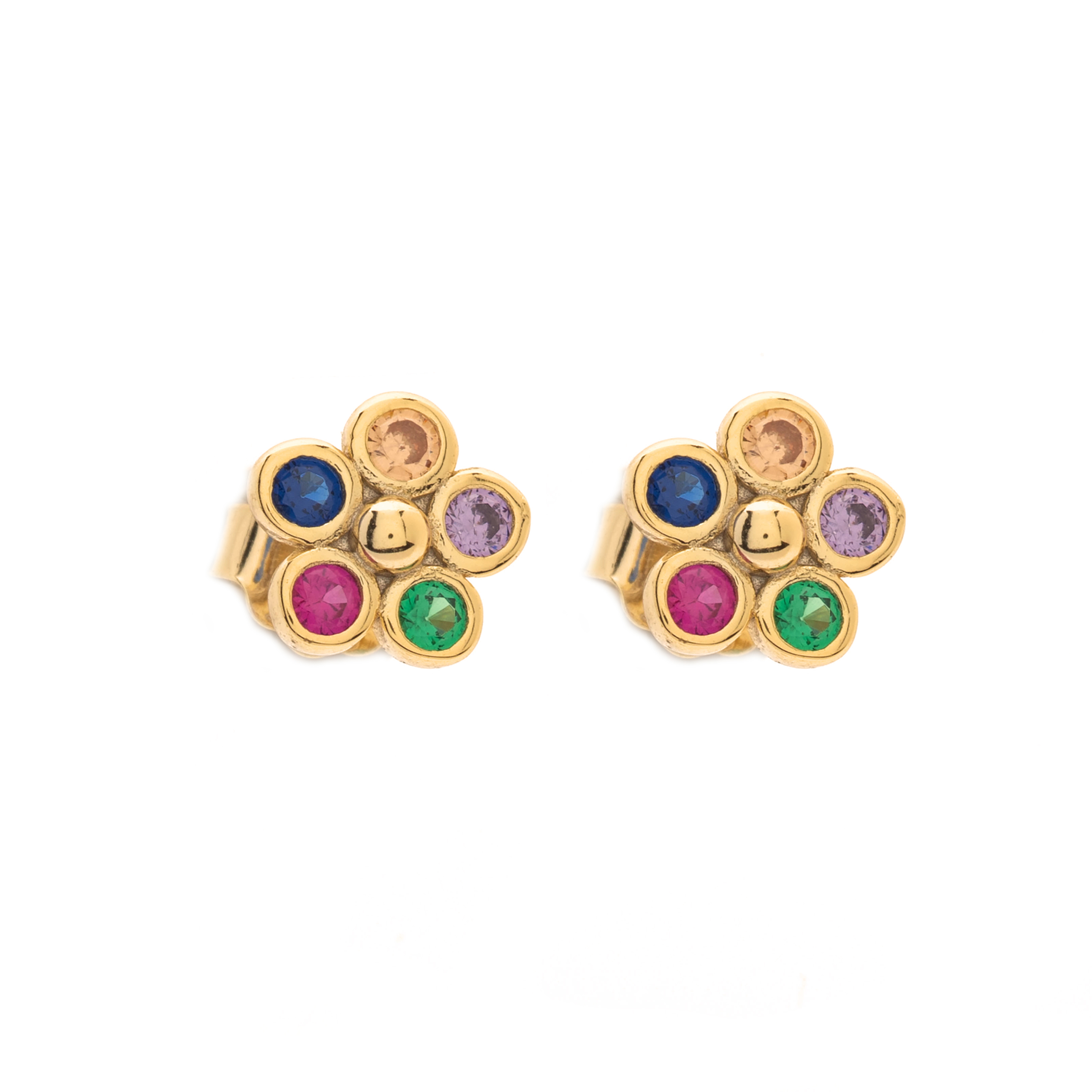 Σκουλαρίκια ασημένια επιχρυσωμένα με λουλούδια από ζιργκόν πέτρες.