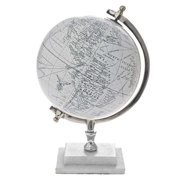 Υδρόγειος μεγάλου μεγέθους 20χ35 εκ. με μαρμάρινη βάση σε λευκό χρώμα.