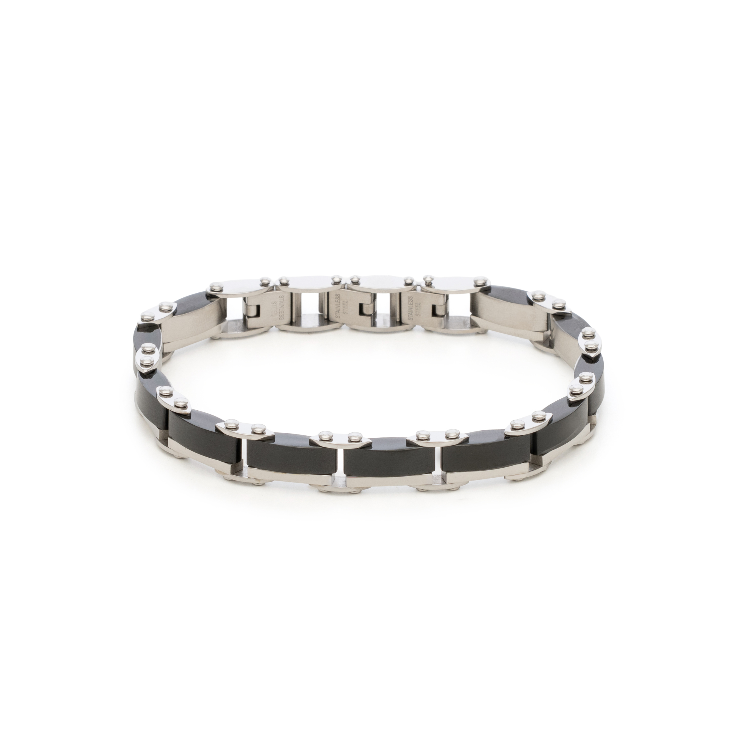 Βραχιόλι χειροπέδα από ανοξείδωτο ατσάλι ασημί και μάυρο χρώμα.