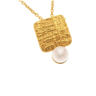 Κολιέ ασημένιο επιχρυσωμένο σε μακρύ σχέδιο με πέρλα.