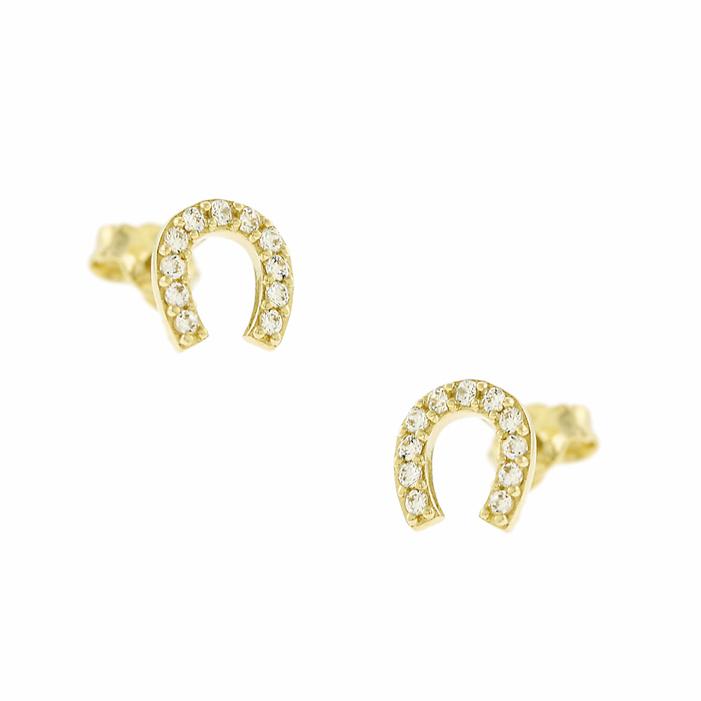 Σκουλαρίκια σε χρυσό 09 καρατίων σε σχήμα πέταλλο με ζιργκόν πέτρες.