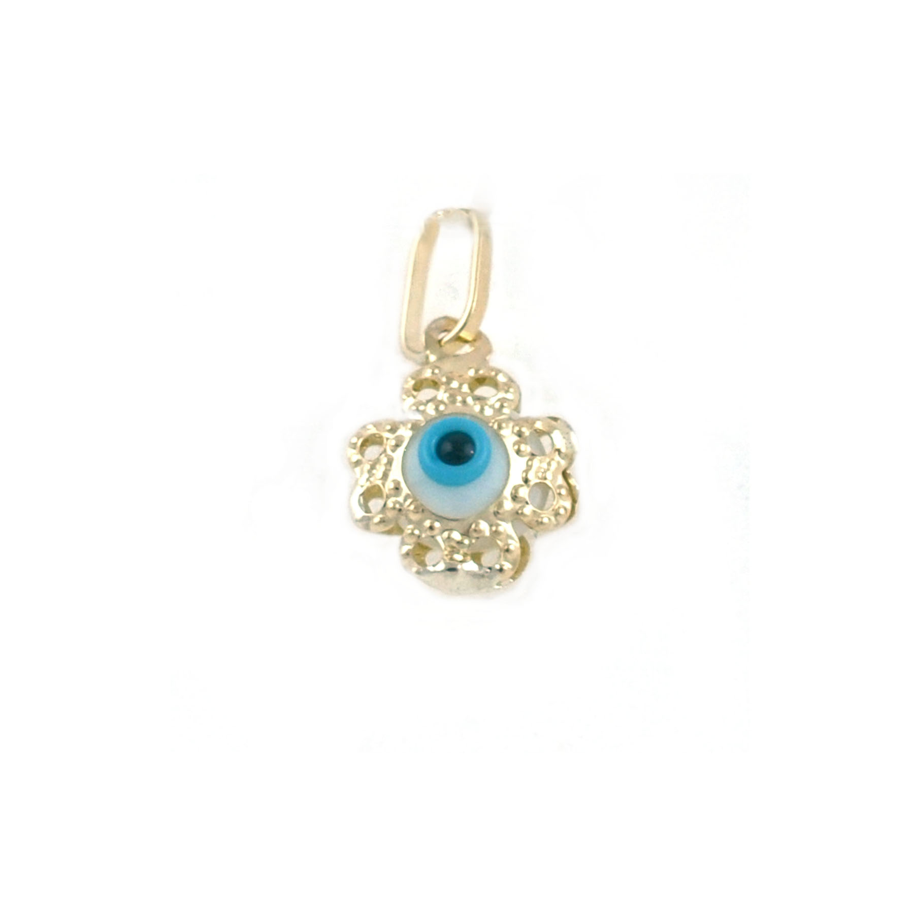 Χρυσό φυλαχτό ματάκι μέσα σε σταυρό , μικρό μέγεθος μενταγιόν από χρυσό 09 καρατίων.