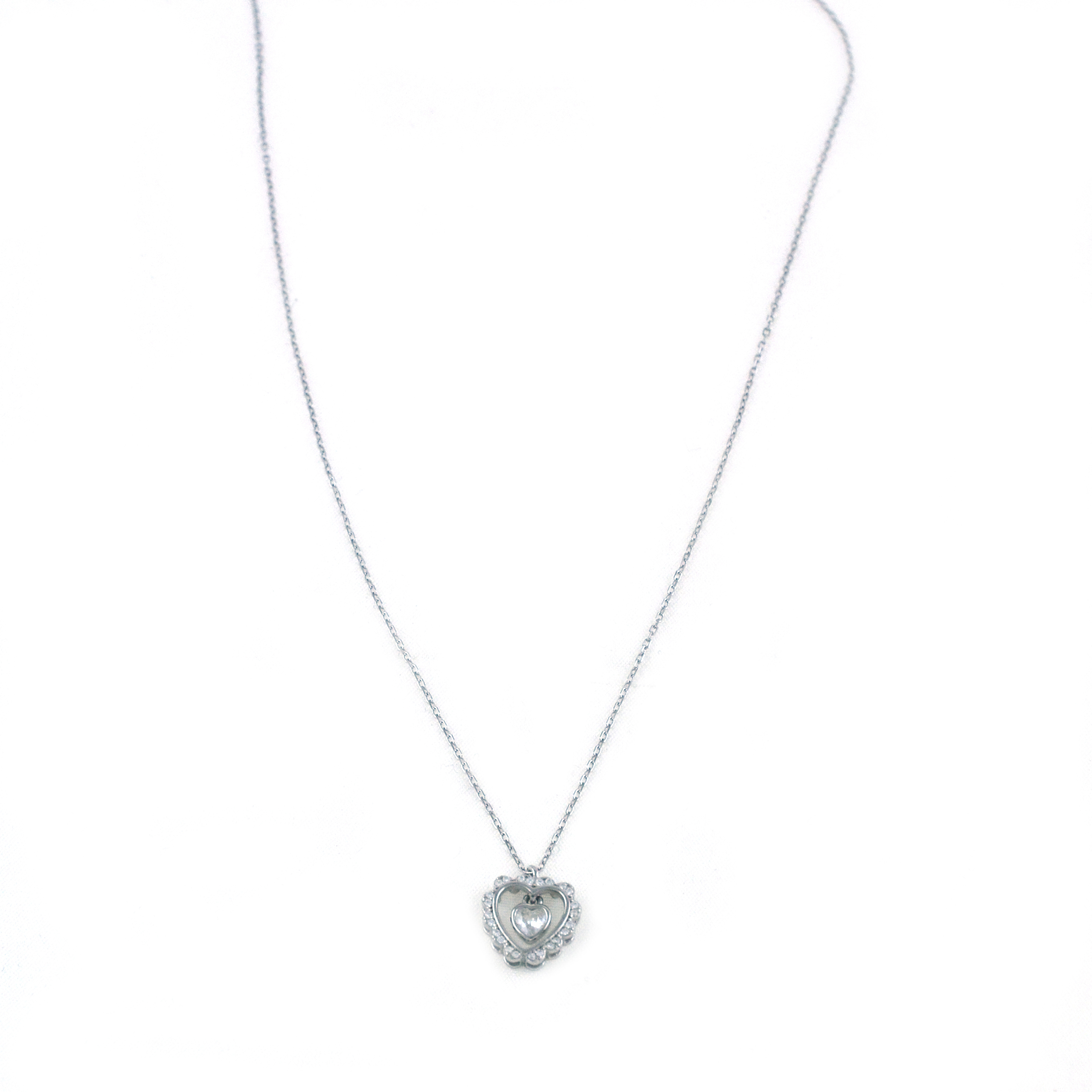 Κολιέ ασημένιο σε σχήμα καρδιά με ζιργκόν πέτρες.
