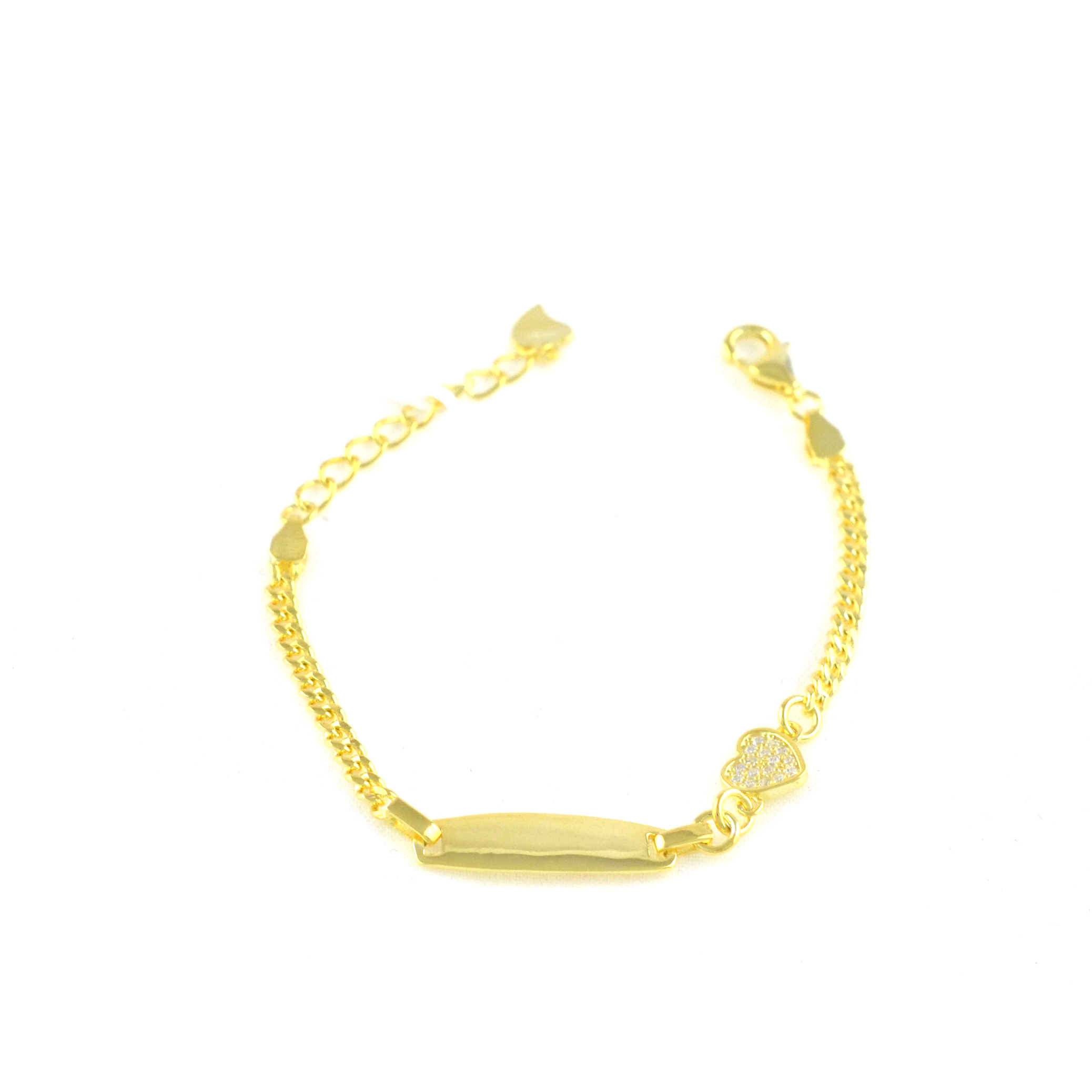 Βραχιόλι ταυτότητα ασημένια σε κίτρινο χρυσό χρώμα με καρδιά από ζιργκόν πέτρες.