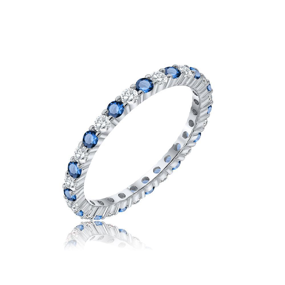 Δαχτυλίδι ασημένιο λεπτό βεράκι με ζιργκόν πετρες λευκού και μπλε χρώματος.