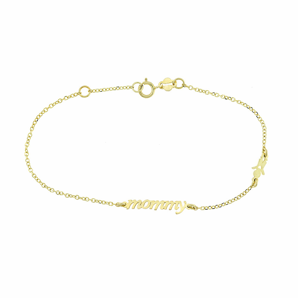 Βραχιόλι χρυσό 09 καρατίων με MAMA και παιδάκι στο πλάι.