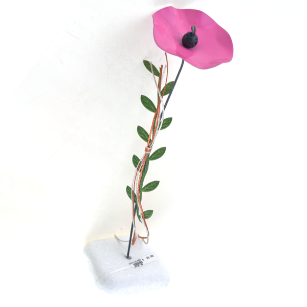 Χειροποίητο διακοσμητικό με μεταλλικό στοιχείο πάνω σε μάρμαρο. Παπαρούνα με χρώμα και κορδέλες.