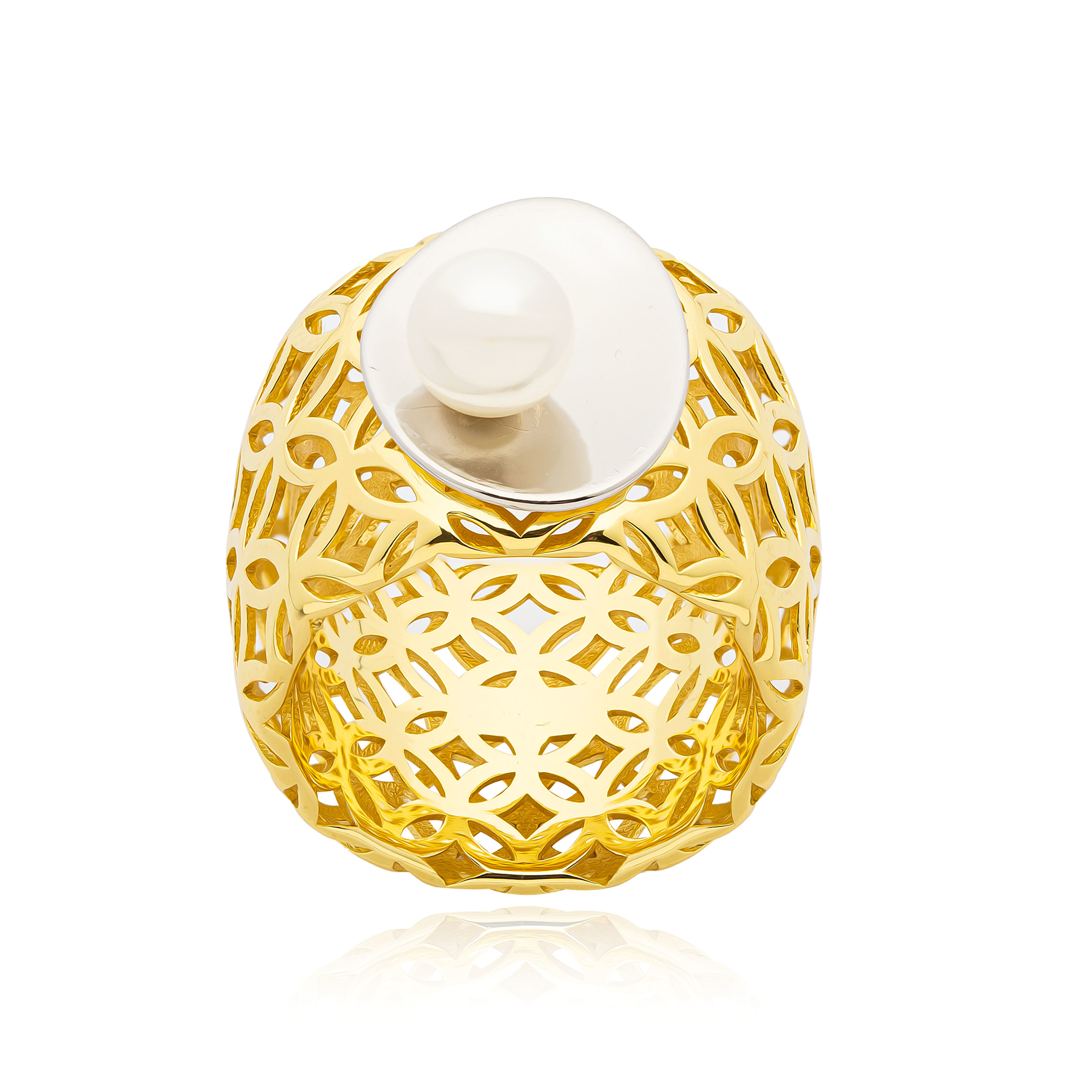Δαχτυλίδι ασημένιο επιχρυσωμένο με εντυπωσιακό τρισδιάστατο σχήμα από πέρλα.