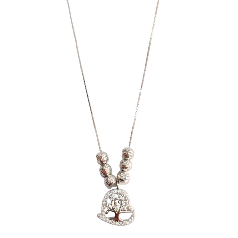 Κολιέ ασημένιο με μενταγιόν δέντρου ζωής από ζιργκόν πέτρες.