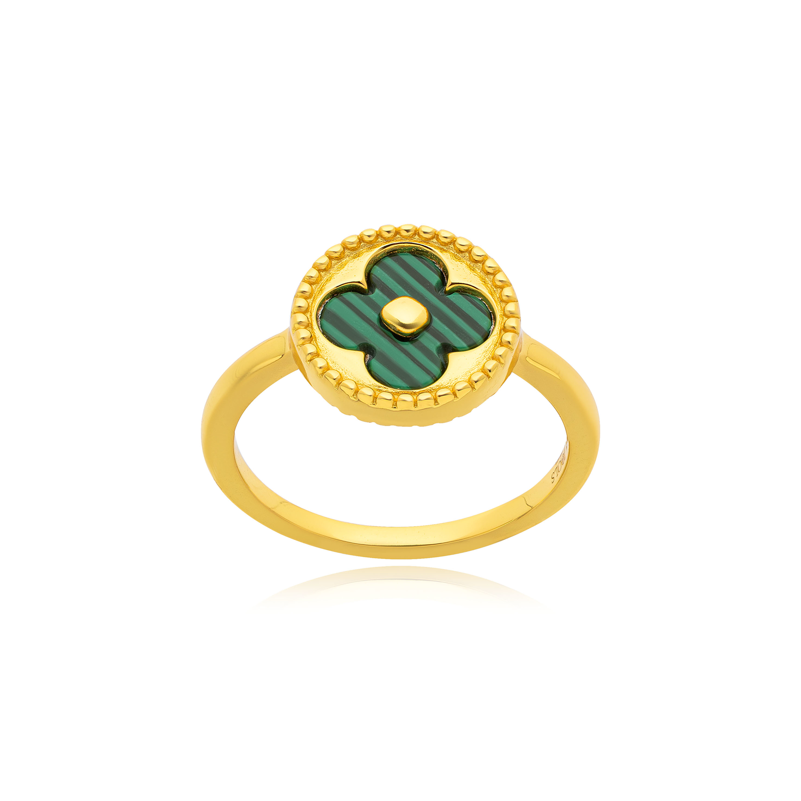 Δαχτυλίδι ασημένιο επιχρυσωμένο με πέτρα μαλαχίτη.