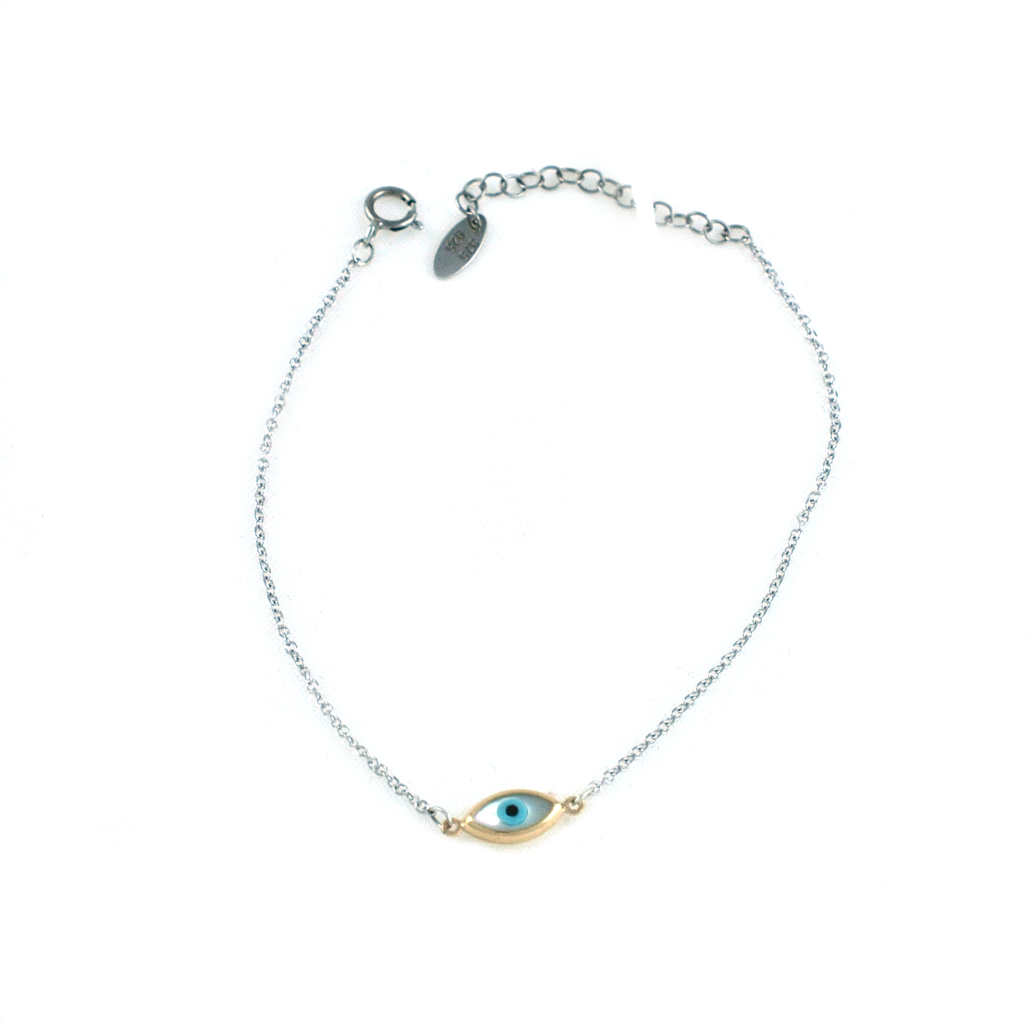 Βραχιόλι χρυσό 09 καρατίων με λεπτή αλυσίδα και ασημένια αλυσίδα από μοτίφ μάτι.