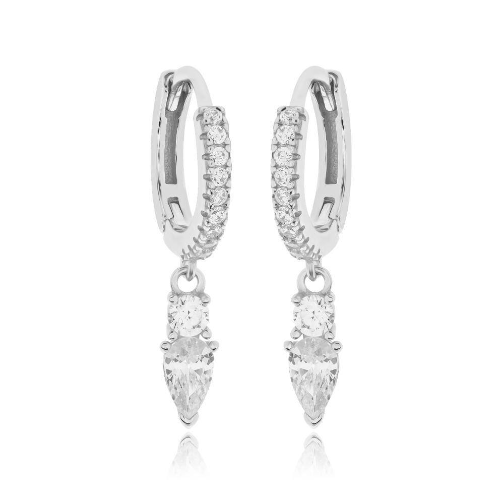Σκουλαρίκια κρεμαστά με σχήμα πολύ μικρού κρίκου με ζιργκόν πέτρες.