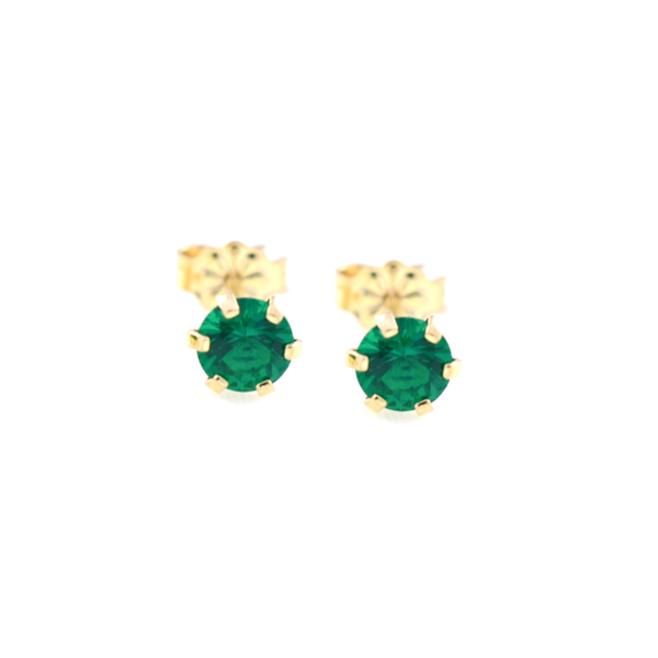 Χρυσά σκουλαρίκια μονόπετρα με πράσινες ζιργκόν πέτρες.