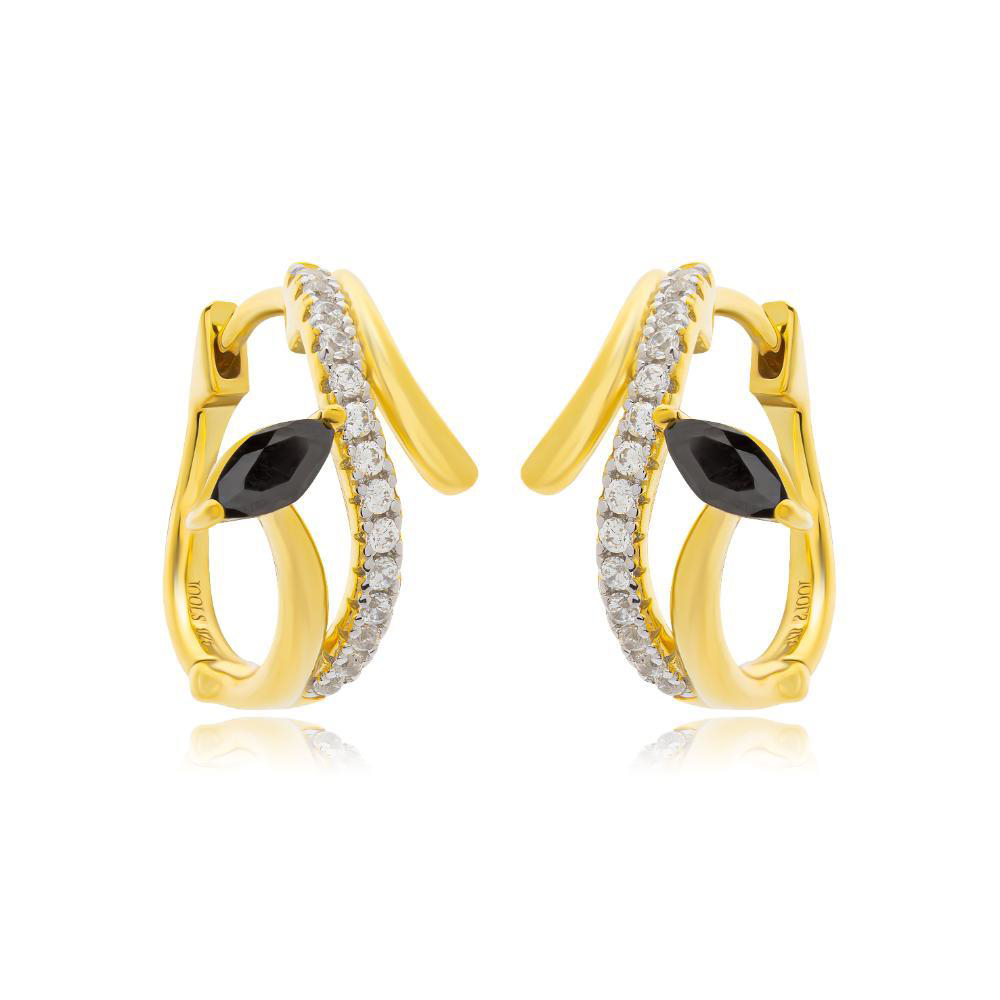 Σκουλαρίκια ασημένια επιχρυσωμένα σε σχέδιο κρίκων μικρού μεγέθους με ζιργκόν πέτρες καρφωμένες.