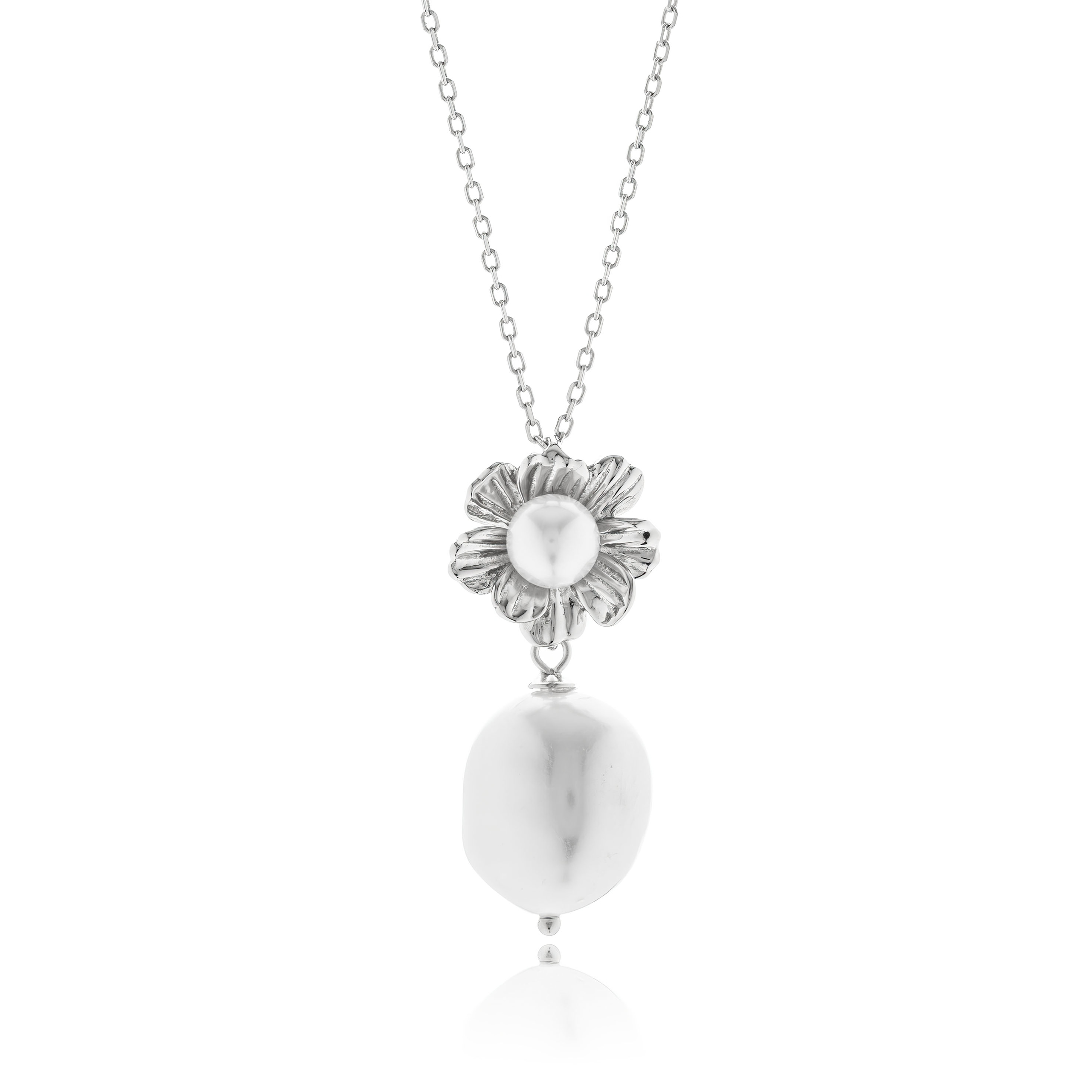 Κολιέ ασημένιο σε σχέδιο κρεμαστό με μαργαριτάρι.