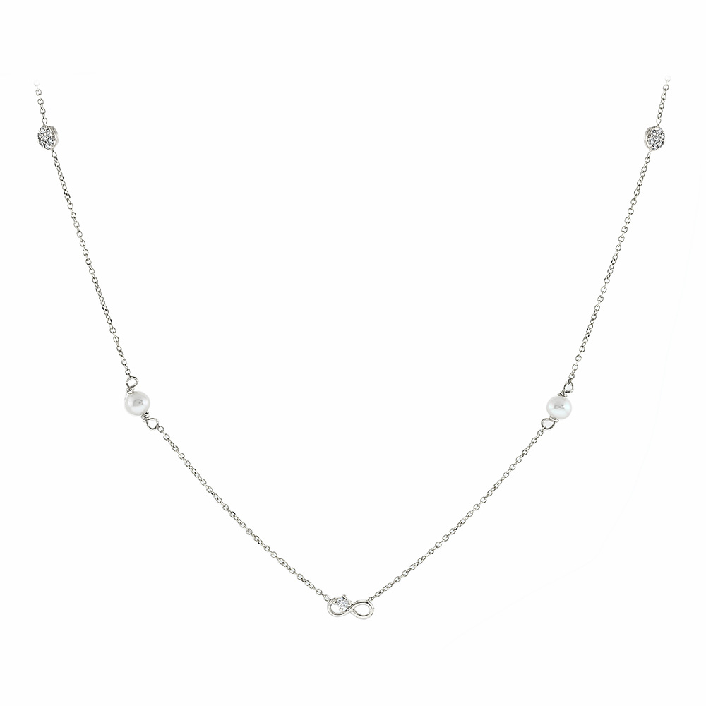 Κολιέ 09 καρατίων σε λευκό χρυσό χρώμα με περασμένα μαργαριτάρια γλυκού νερού και άπειρο από ζιργκόν πέτρες.