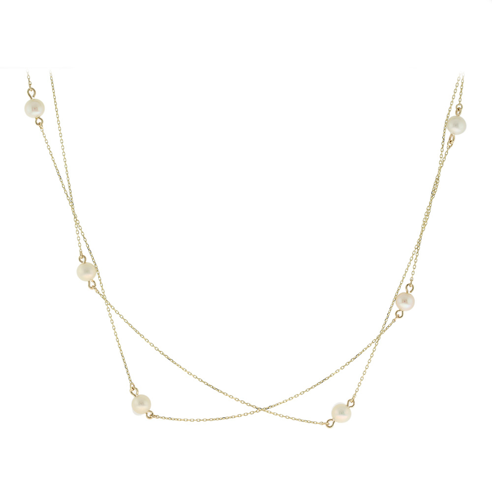 Κολιέ 14 καρατίων σε χρυσό χρώμα με μαργαριτάριa γλυκού νερού και σχέδιο διπλής αλυσίδας.
