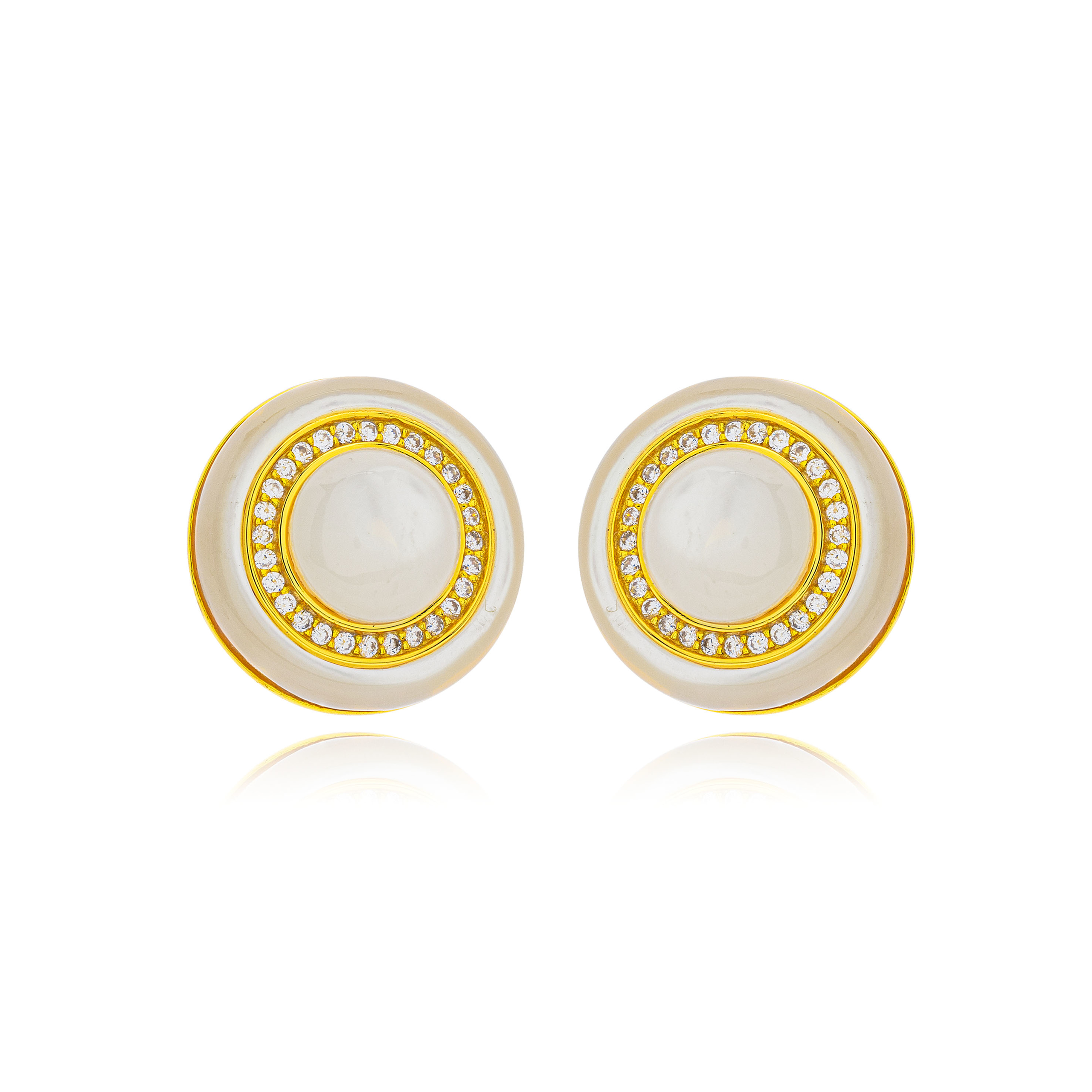 Σκουλαρίκια ασημένια επιχρυσωμένα, σε σχέδιο καρφωτό στρογγυλού σχήματος με φόλντισι.