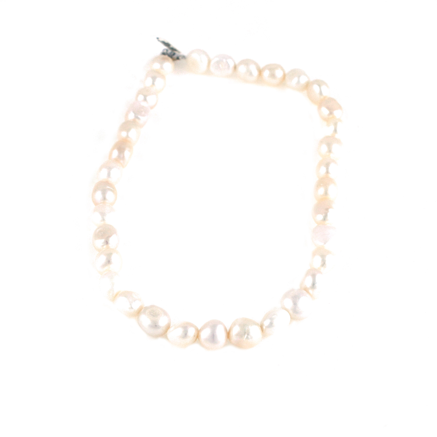 Κολιέ ασημένιο με σειρά από μεγάλα και ακονόνιστα μαργαριτάρια.