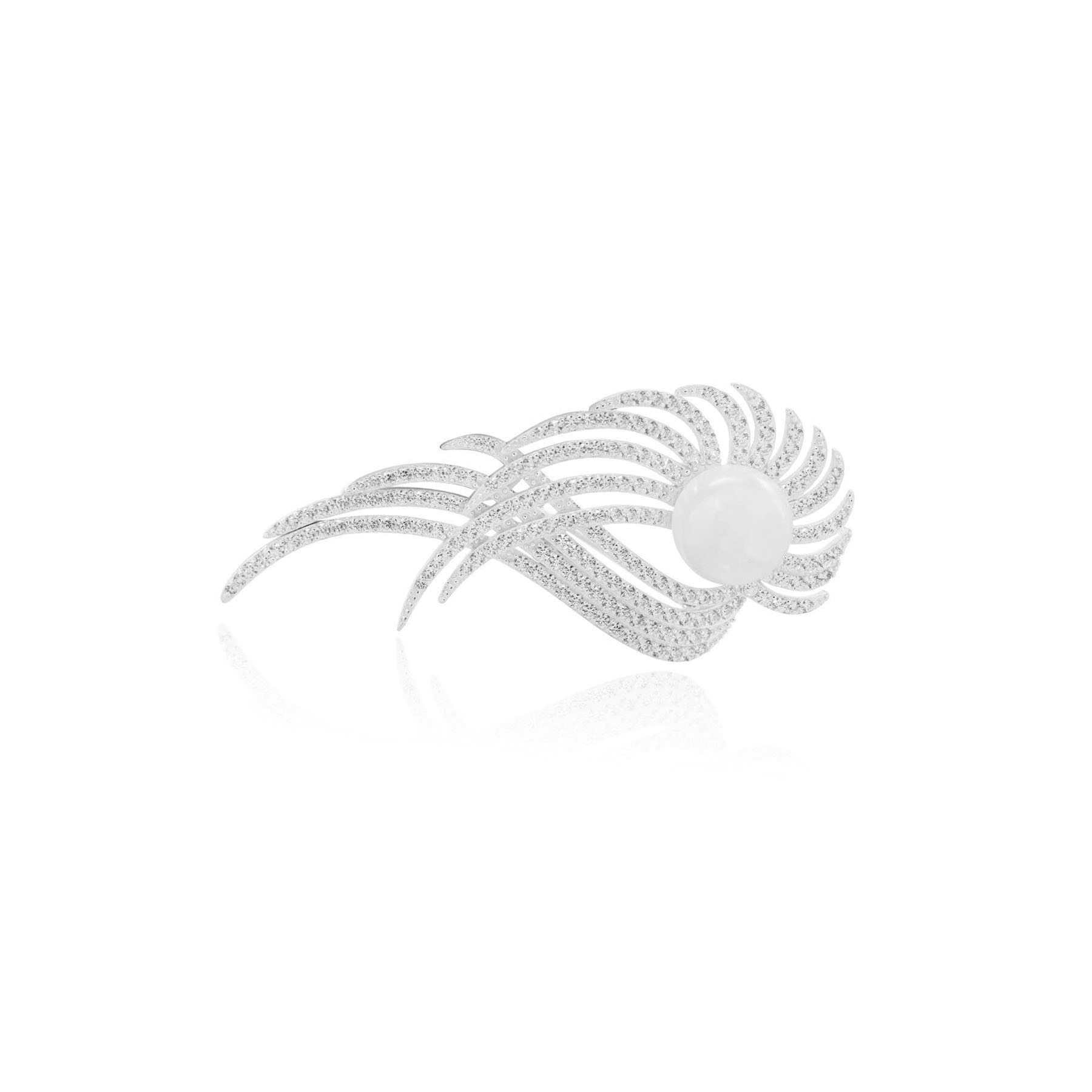 Καρφίτσα ασημένια με ζιργκόν πέτρες και γνήσιο μαργαριτάρι γλυκού νερού. Χειροποίητο κομμάτι με τέχνη και λάμψη.