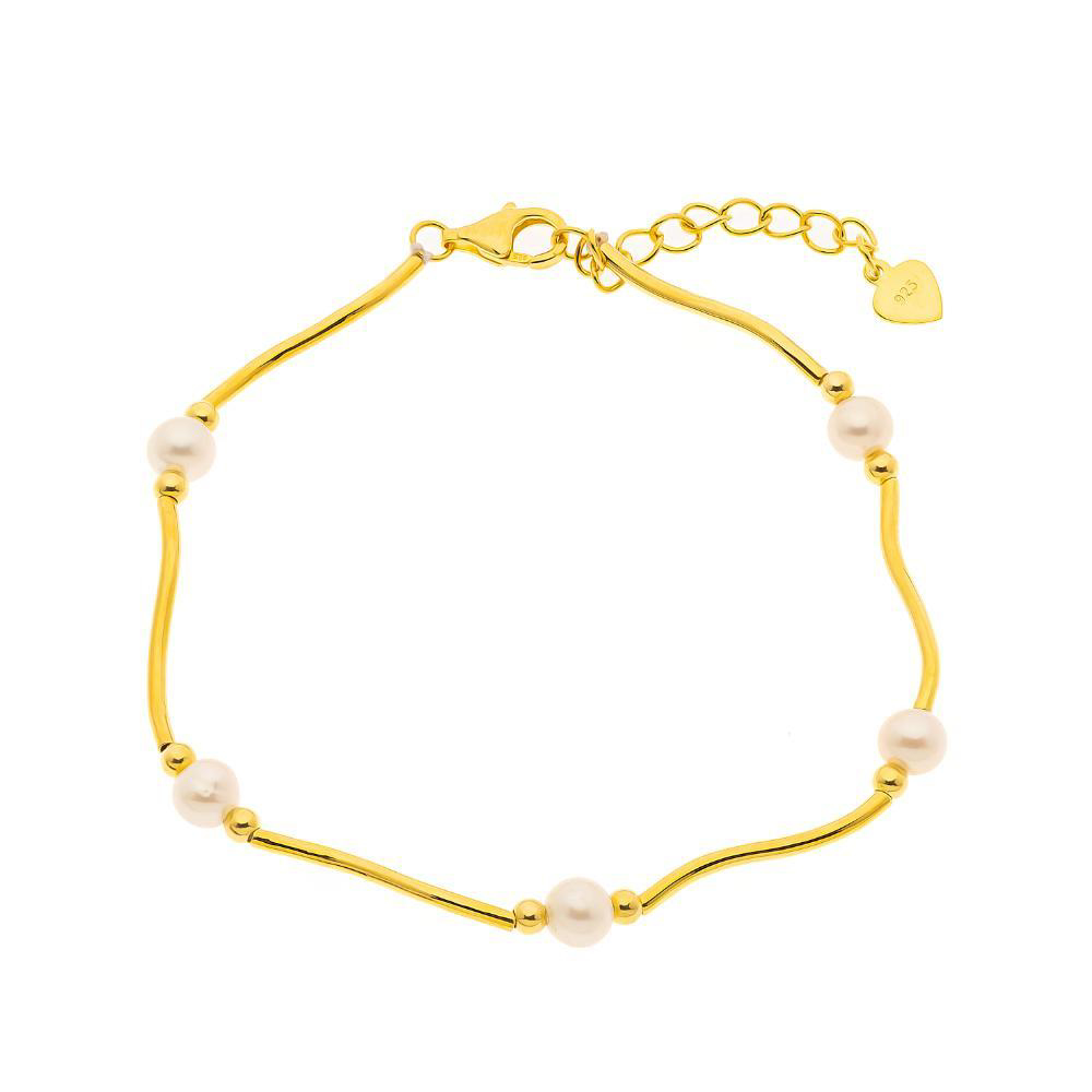Βραχιόλι ασημένιο σε κίτρινο επιχρύσωμα με πέρλες κατά μήκος.