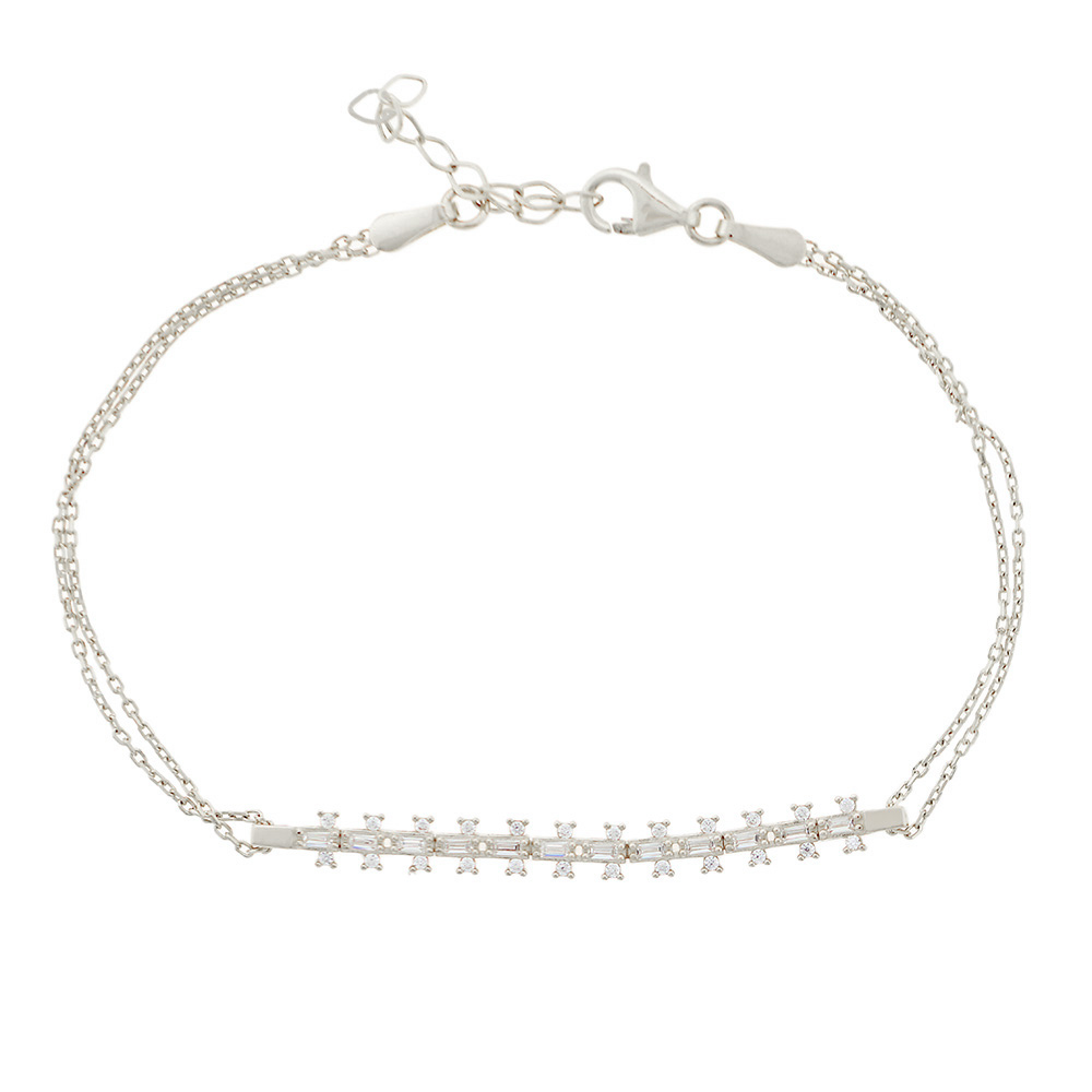 Βραχιόλι σε λευκό χρυσό 14 καρατίων με σχέδιο από ζιργκόν πέτρες.