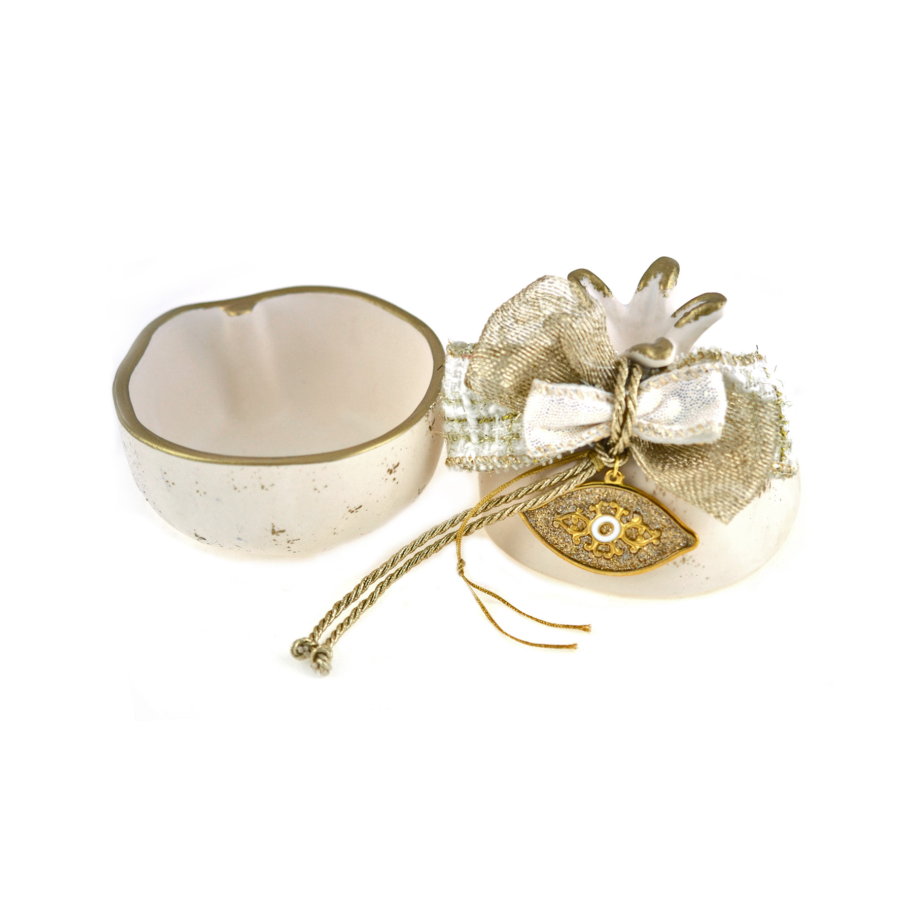Χειροποίητο γούρι ρόδι ανοιγόμενο, μεσσαίου  μεγέθους με κορδέλες και μεταλλικά στοιχεία.
