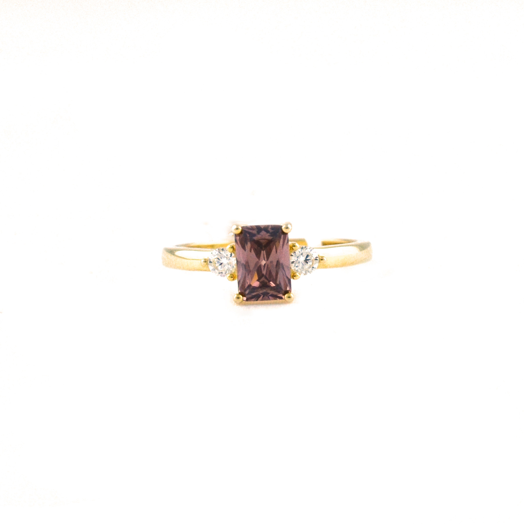 Δαχτυλίδι ασημένιο επιχρυσωμένο με ορθογώνια πέτρα ζιργκόν καφέ χρώματος και λευκού.