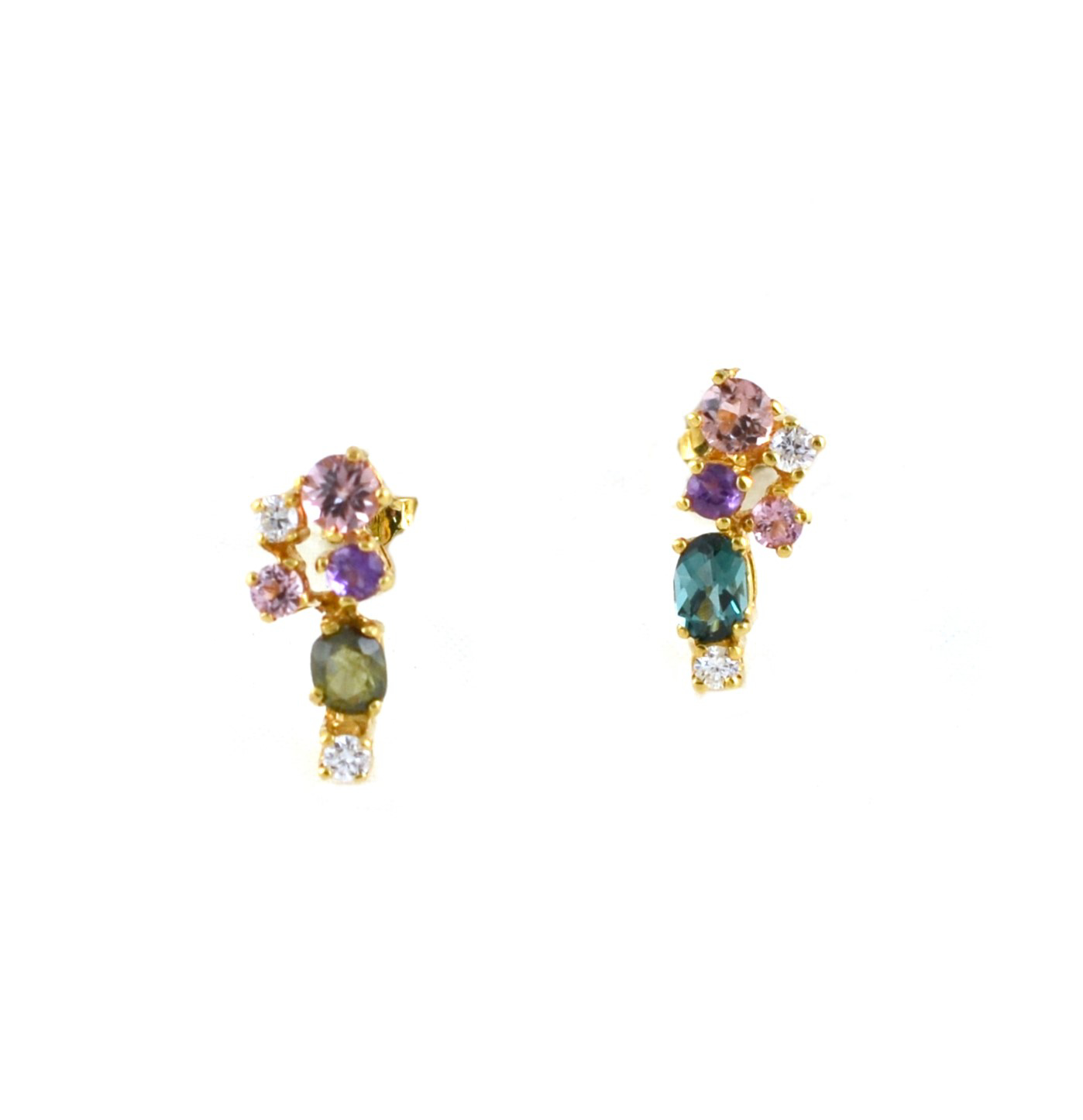 Σκουλαρίκια χρυσα καρφωτά σε 18 καράτια χρυσού με πολύτιμες πέτρες άκουα, αμέθυστος, blue london και ορεικτά διαμάντια.