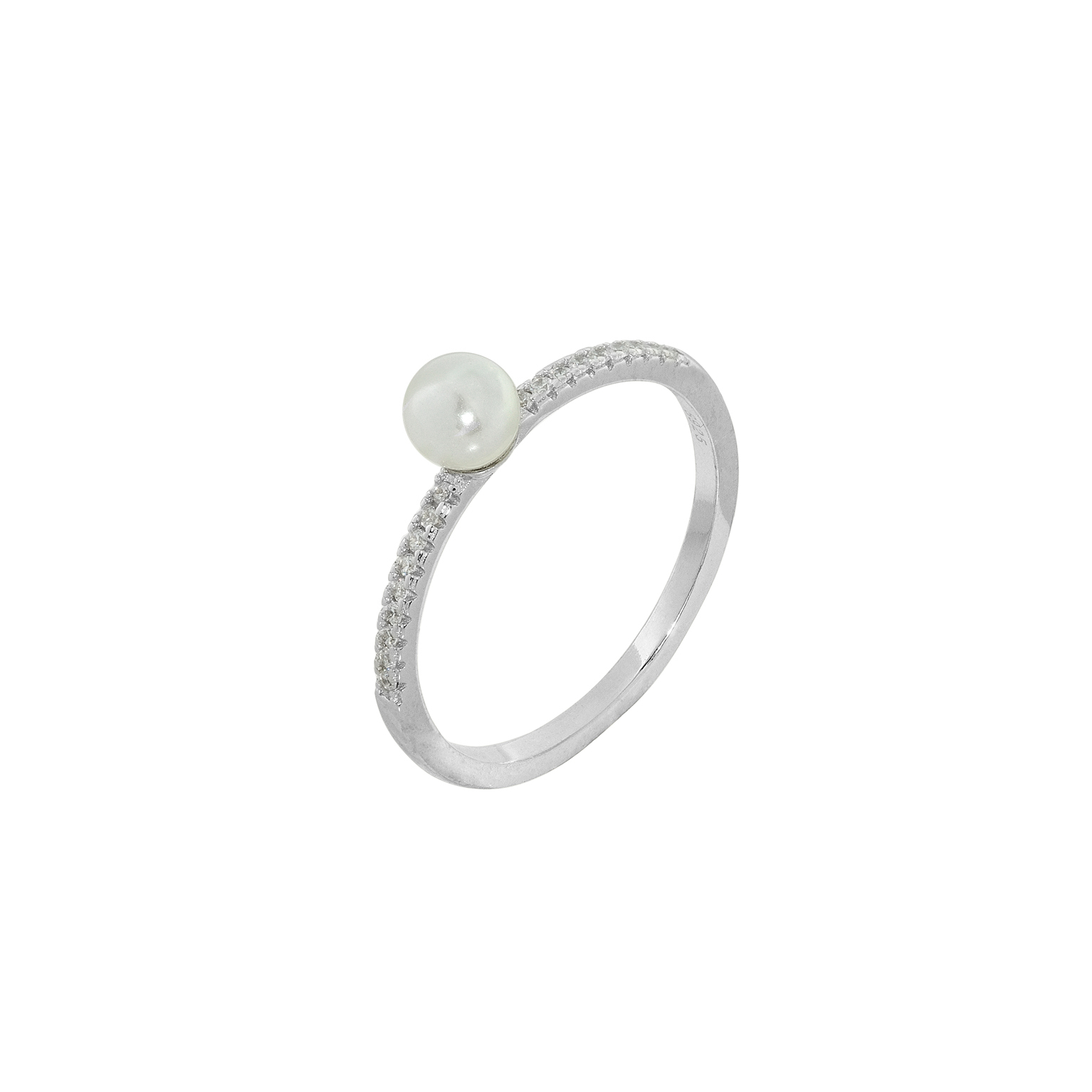 Δαχτυλίδι ασημένιο σε στυλ βεραάκι από πέτρες ζιργκόν και πέρλα.