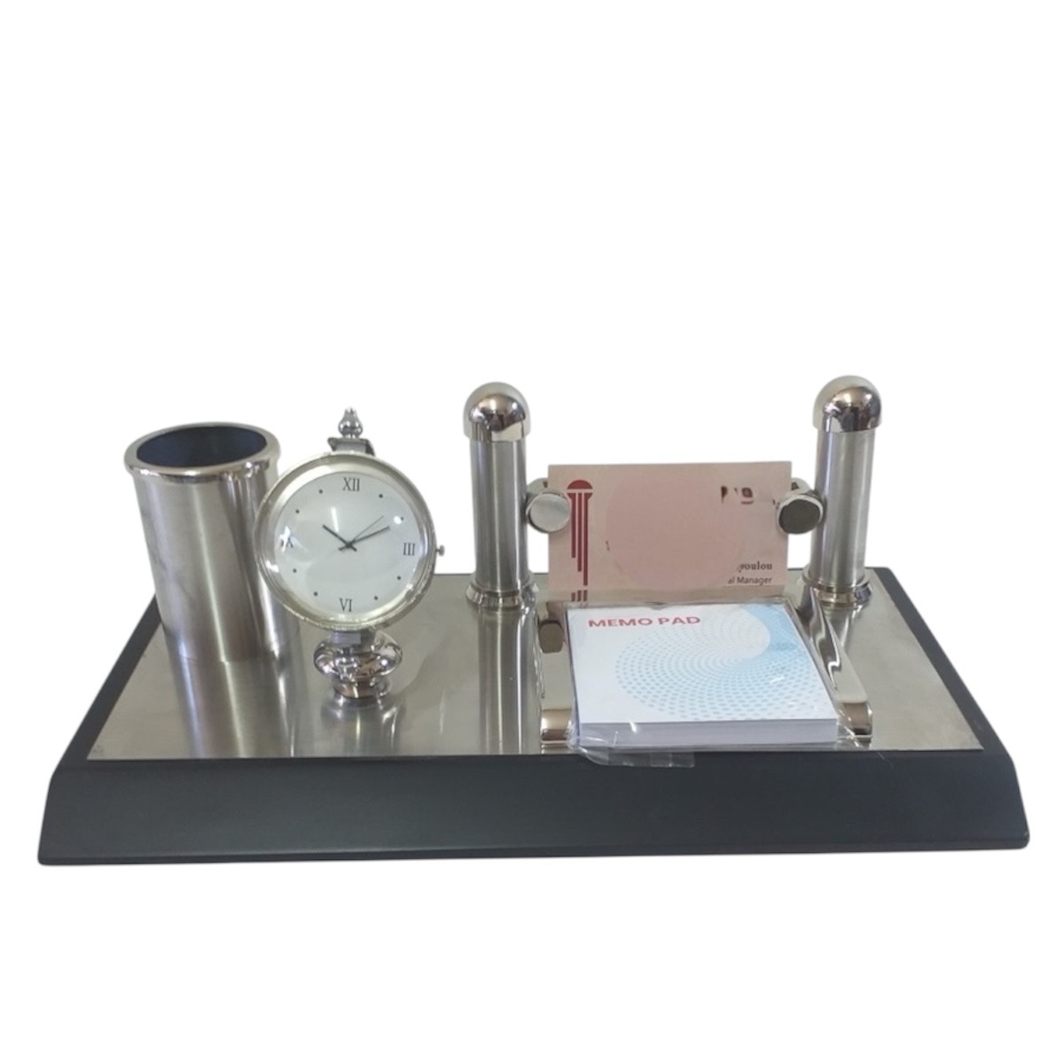 Διακοσμητικό σετ γραφείου μεγάλου μεγέθους με θέση για κάρτες, ρολόι μπαταρίας,μολυβοθήκη και θέση σημειώσεων.