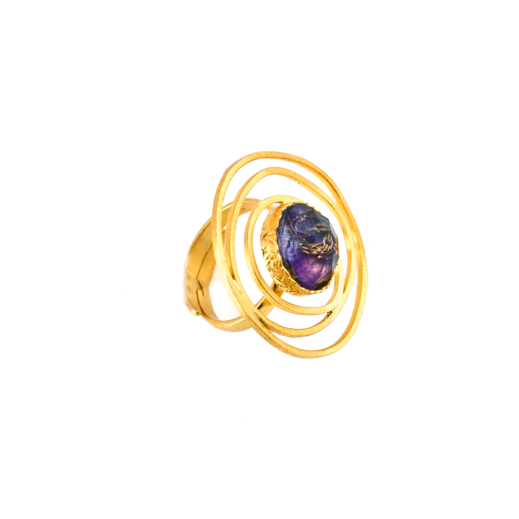 Δαχτυλίδι ασημένιο σε κίτρινο επιχρύσωμα με ημιπολύτιμη πέτρα αμέθυστου κόπερ.