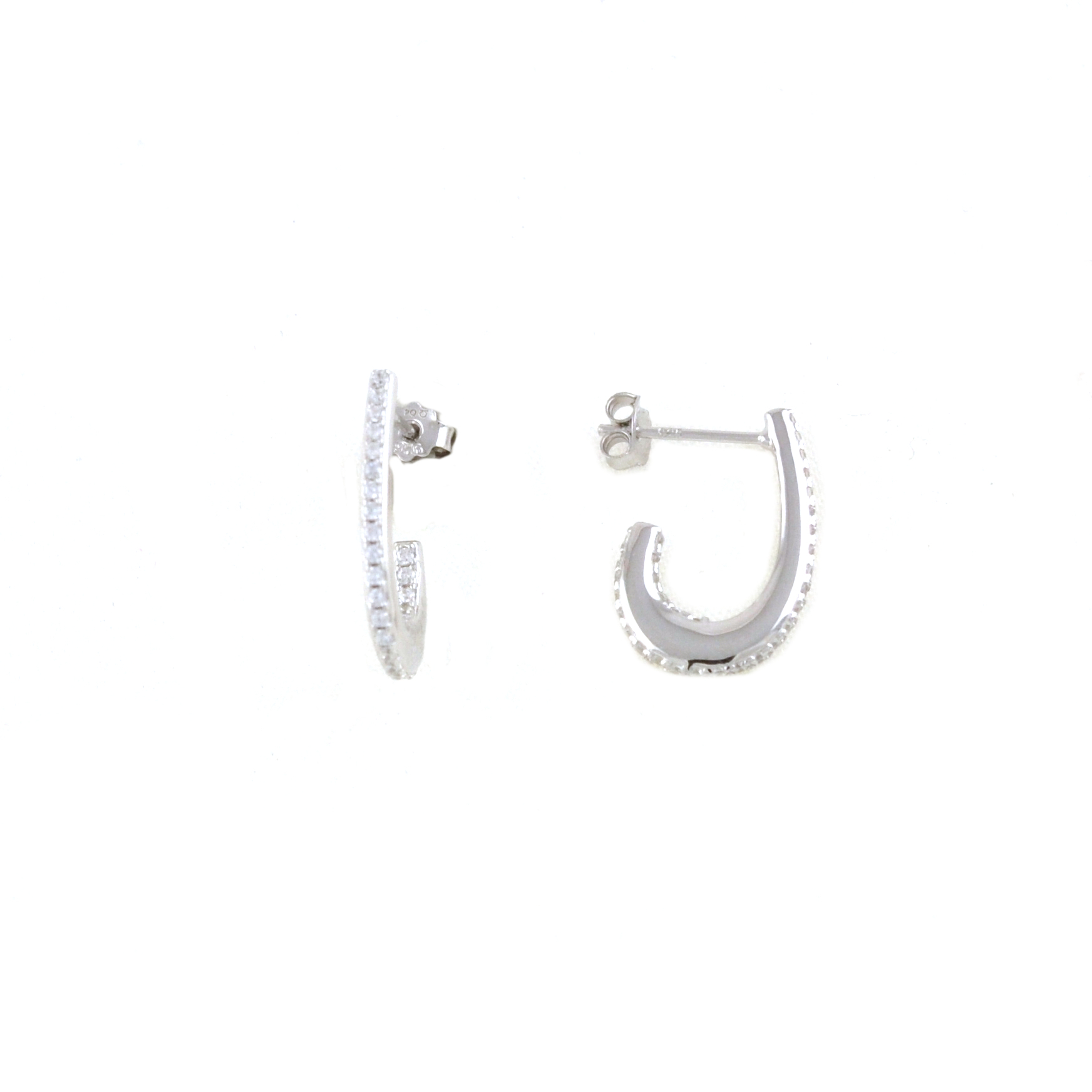 Ασημένια σκουλαρίκια καρφωτά κρεμαστά σε στυλ κρίκου με ζιργκόν πέτρες.