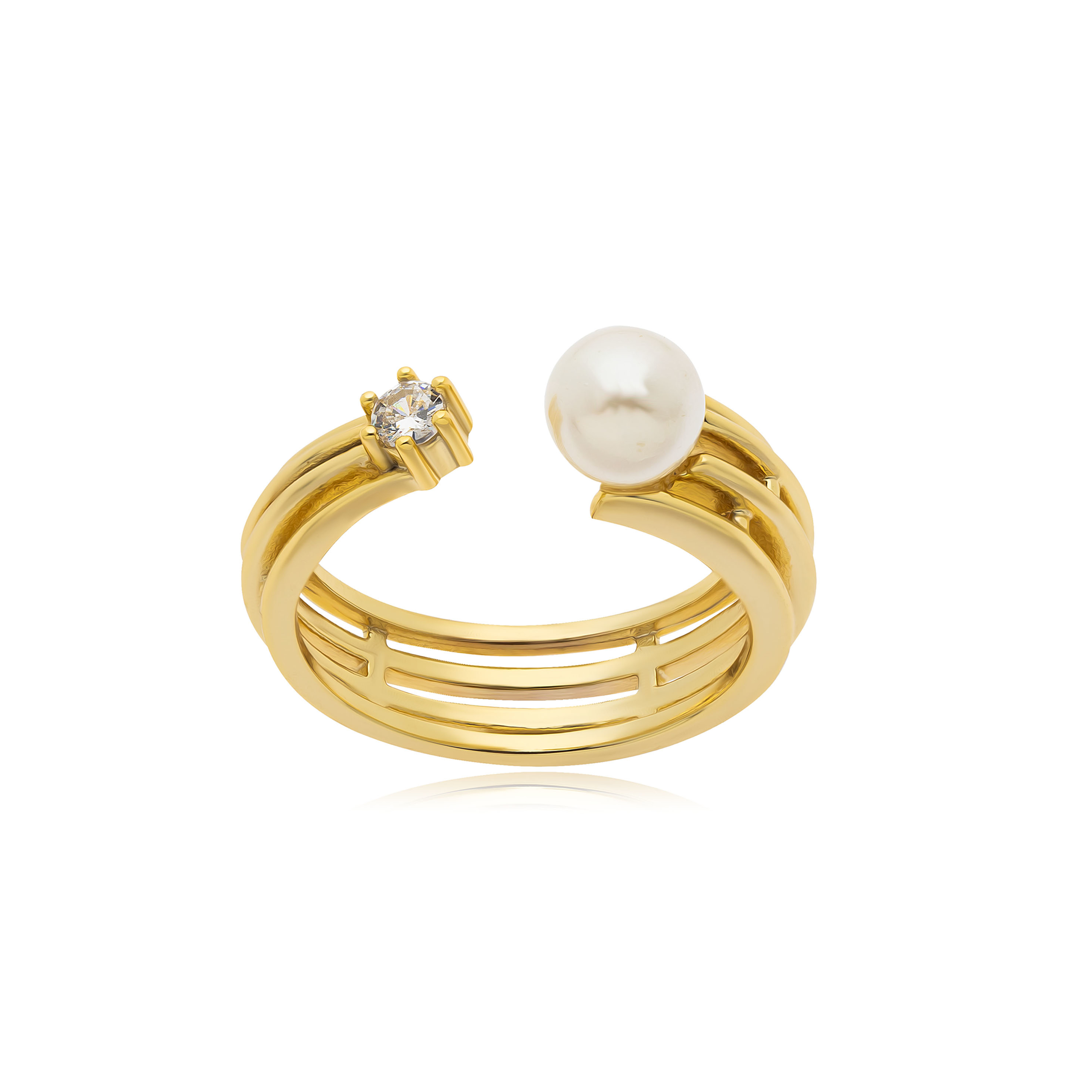 Δαχτυλίδι ασημένιο επιχρυσωμένο σε στυλ ανοιγόμενο βεράκι με ζιργκόν πέτρα και πέρλα .