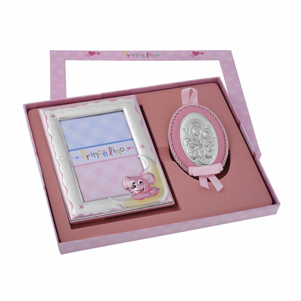 Σετ με παιδική εικόνα και κορνίζα μικρού μεγέθους 9χ13 εκ.  Κράμα ασημιού και σμάλτο.