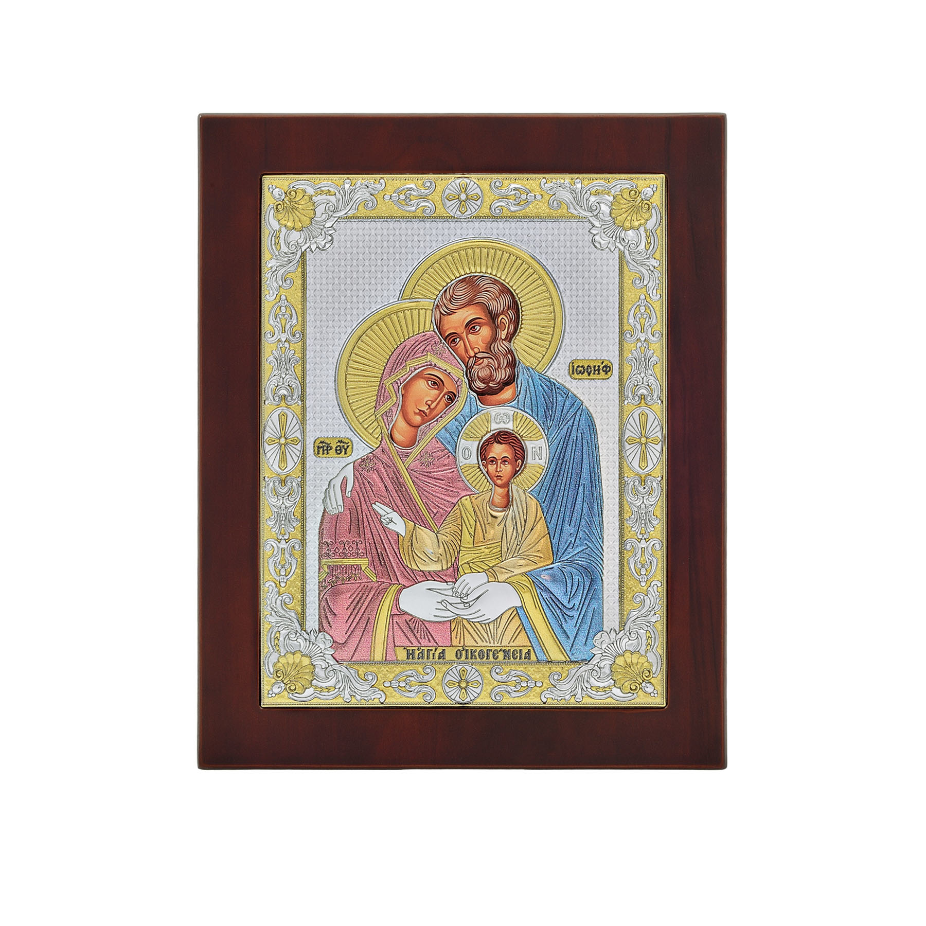 Εικόνα  7χ9 cm (33χ25 cmμε 96€ ,20x26cm με 63€  ,15x20cm με 42€ και 10x14cm με 27€  ) με κράμα ασημιού πλαισιωμένη με πραγματικό ξύλο. Ξύλο σε λευκό χρώμα και επιχρύσωμα στο εικόνισμα. Περιέχει εγγύηση.