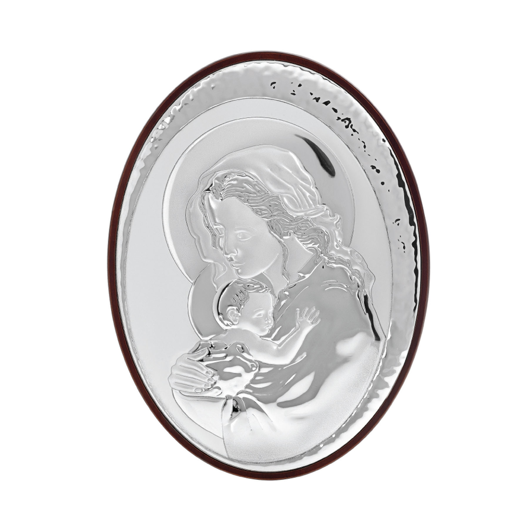 Εικόνα 9x7cm  (34χ26cm με 94€, 21x30cm με 63€, 16x23cm με 45€, 13χ9cm με 23€) με κράμα ασημιού πλαισιωμένη με πραγματικό ξύλο. Ξύλο σε λευκό χρώμα και επιχρύσωμα στο εικόνισμα. Περιέχει εγγύηση.